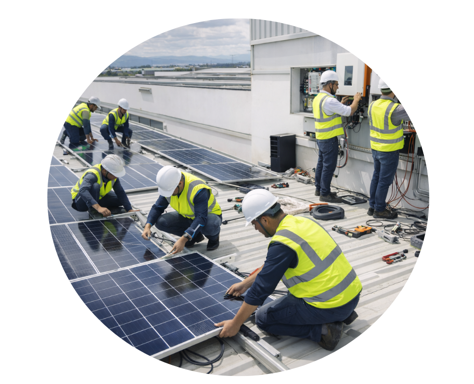 En MODOBIT SAS desarrollamos la instalación electromecánica de sistemas solares fotovoltaicos empresariales de manera integral, asegurando que cada componente se implemente conforme al diseño aprobado, a las exigencias técnicas del proyecto y a los lineamientos normativos aplicables.