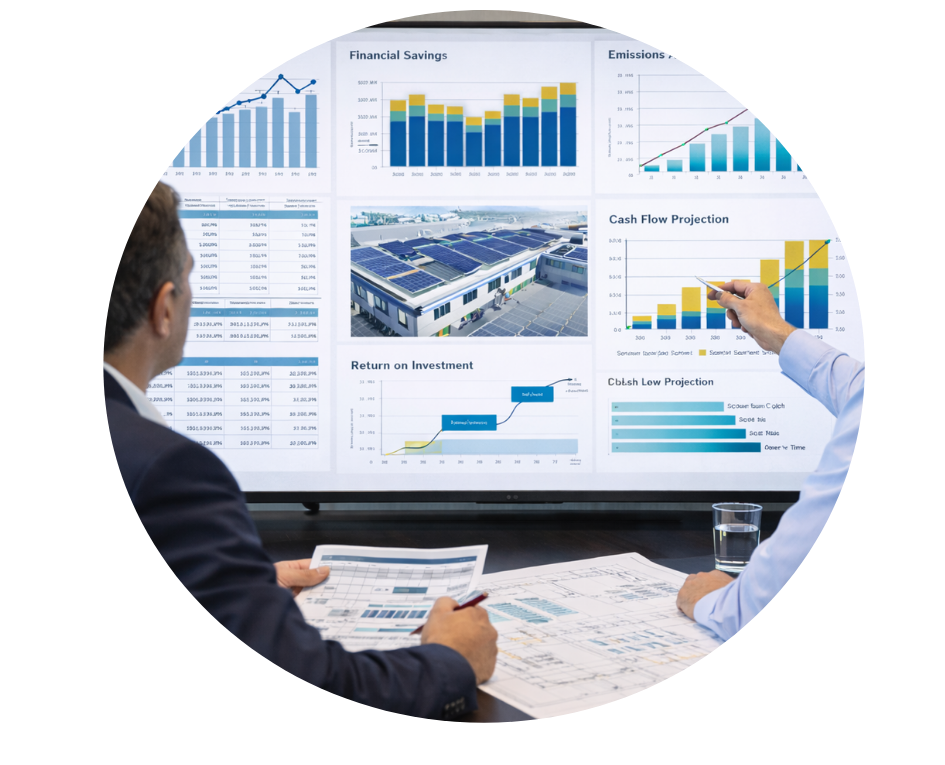 Convertimos la información técnica del proyecto en proyecciones de ahorro, retorno e impacto financiero para respaldar la inversión