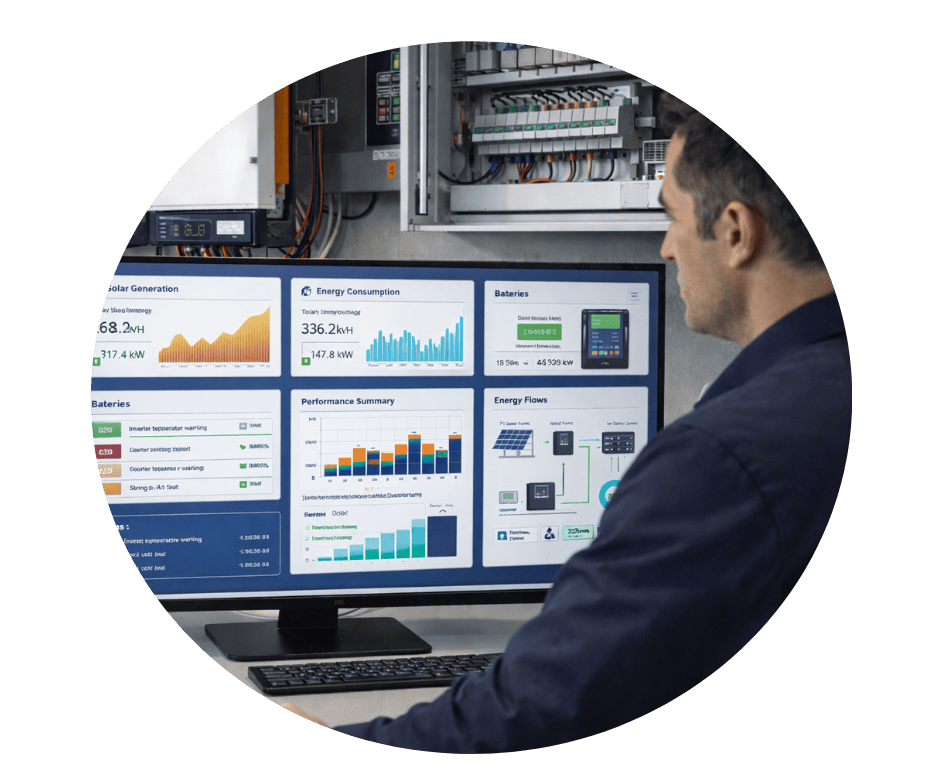 Nuestro objetivo es que la empresa no solo tenga un sistema funcionando, sino también la capacidad de visualizar generación, consumo, alarmas, desempeño y variables críticas desde plataformas de supervisión accesibles y fáciles de interpretar.